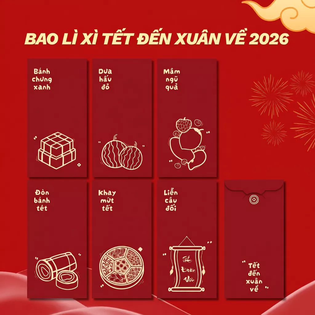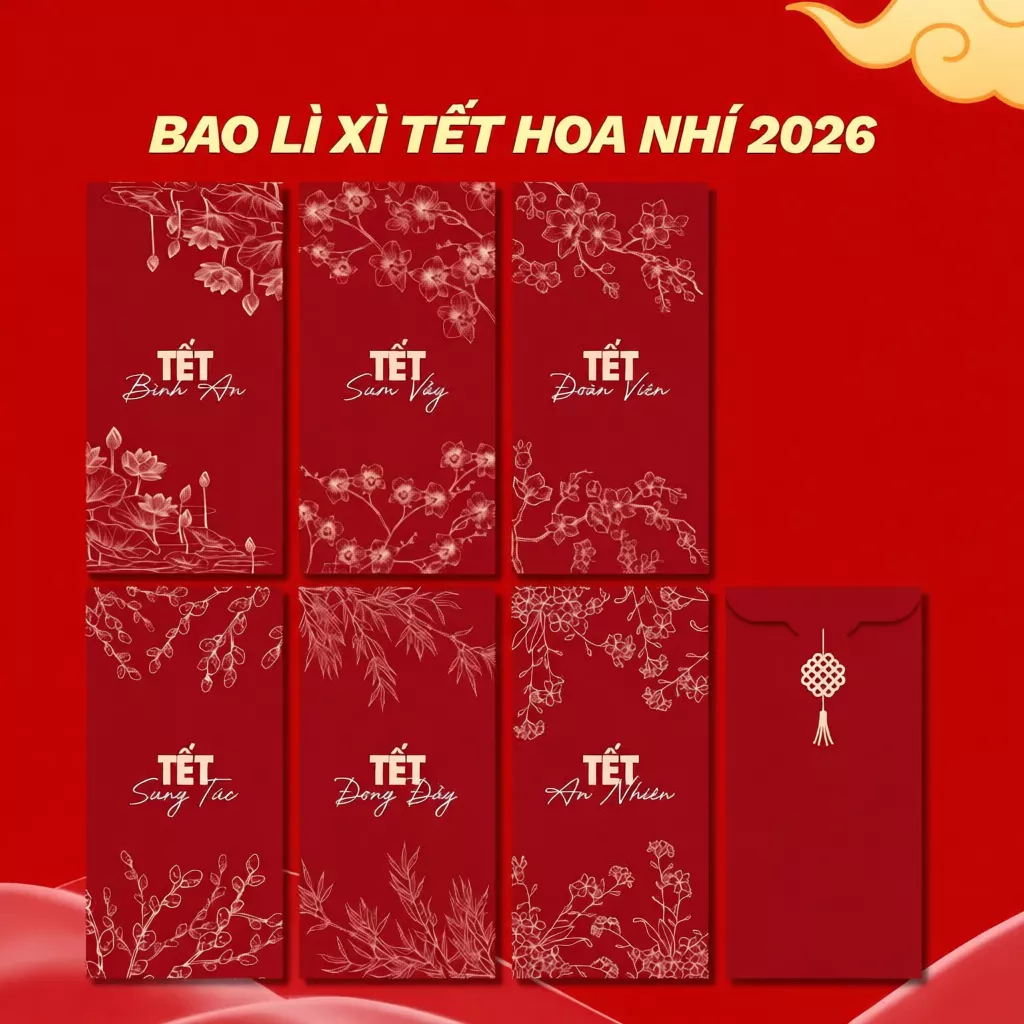 7 đánh giá cho 【Đặc quyền cho chủ thẻ tín dụng】Set bao lì xì Tết 2026 Thiết kế Hoa lá mùa xuân, Hoa Sen, Tết Gia Đình Đoàn Viên – Giấy C150 dày cán màng cao cấp